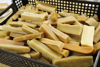 ※天然素材から作られたチーズを切り出しているため、形、重さ、色、においに個体差があります。また、伝統的な製法で作られているため、麻やヤクの毛が付着している場合がありますが、商品の特質上、品質には問題ありません。
