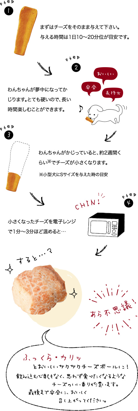 でチーズが小さくなります。※小型犬にSサイズを与えた時の目安